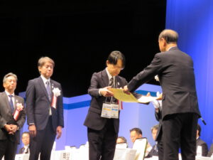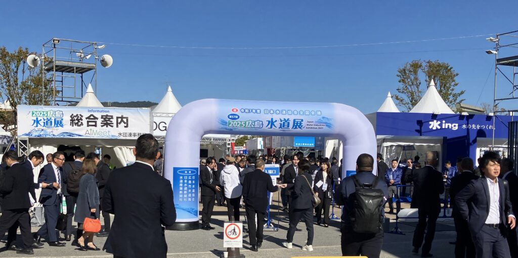 令和7年10月29日(水)、工藤理事長はじめ官公需受注・企画調整委員会のメンバーにて「2025広島水道展」を視察。その後、隣接する広島グリーンアリーナにて開催された日本水道協会全国会議に参加、熊本市上下水道局の「まちなか水道管リニューアル大作戦」が全国初の「水道イノベーション大賞広報大賞」を受賞。その授与式並びに事例発表に立会い共に受賞の喜びを分かち合いました。午後からは広島市指定上下水道工事業協同組合へ移動、高原理事長様の進行により、広島市上下水道局、台湾自來水公司、全管連、宇都宮市上下水道局、宇都宮市管工事業協同組合など40名を超える皆さんで共通の課題である老朽管の更新対策や人手不足への対応などに関し意見交換を行うと共に、組合に整備されている充実した研修施設を視察しました。